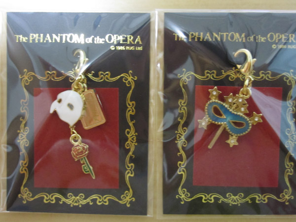左が5000回公演記念のファントムマスクで、右がクリスティーヌのマスクのチャームです。